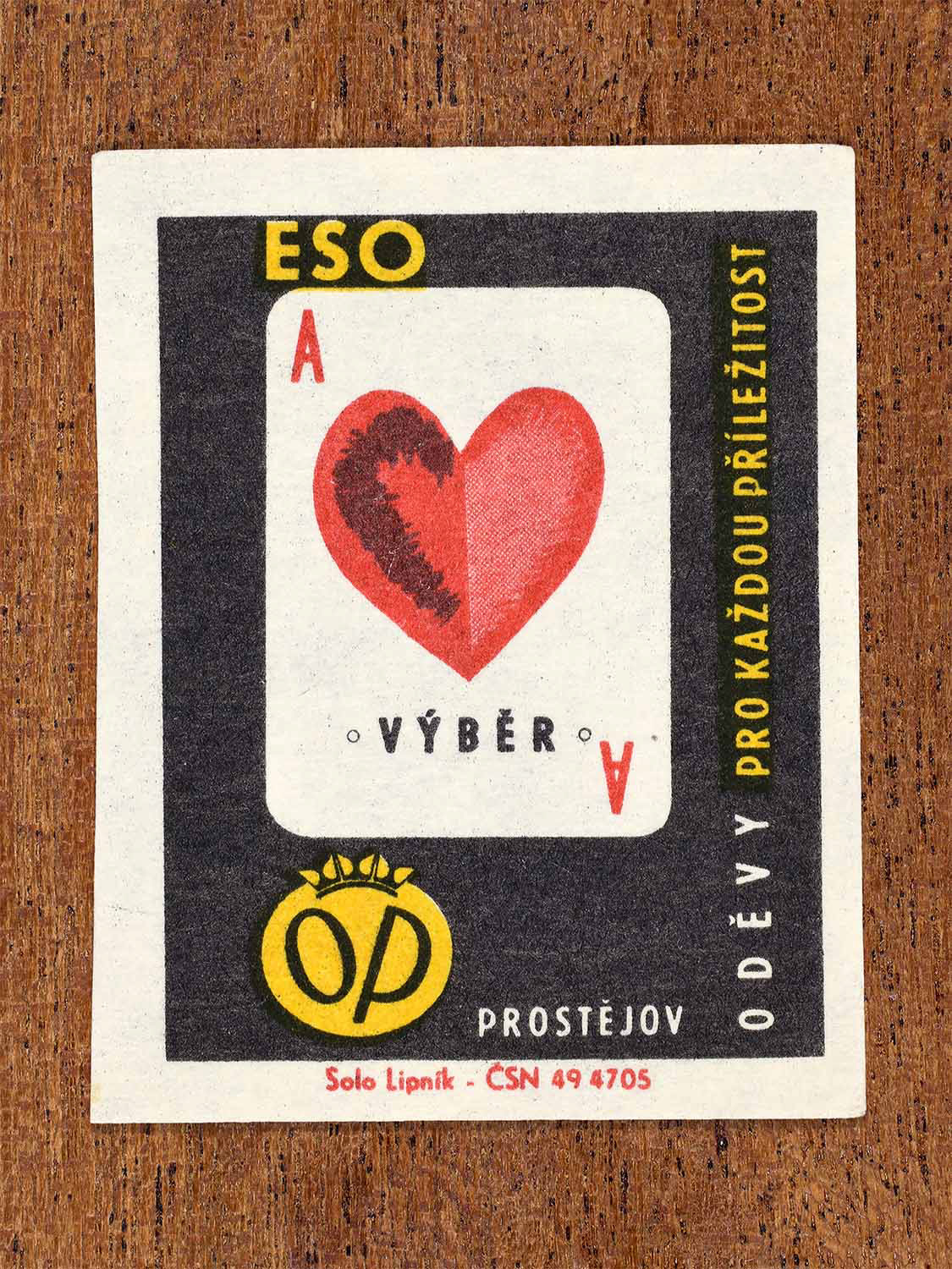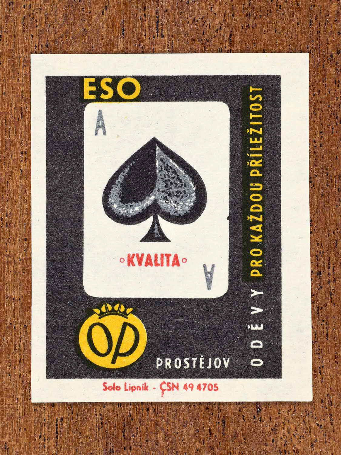 Produced by: Solo Lipník match factory, Czechoslovakia.